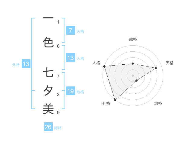 一色 七夕美さんを姓名の画数から五運を鑑定