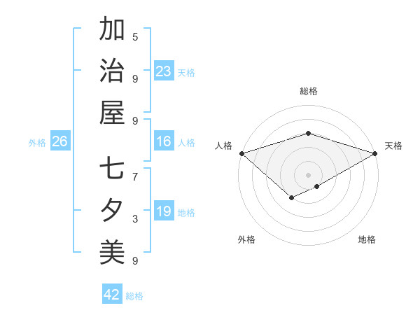加治屋 七夕美さんを姓名の画数から五運を鑑定