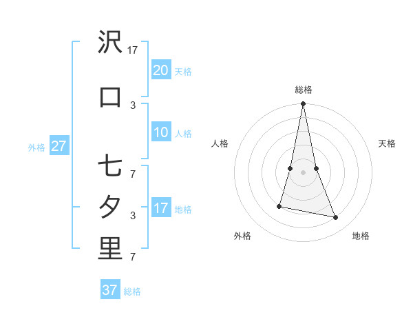 沢口 七夕里さんを姓名の画数から五運を鑑定
