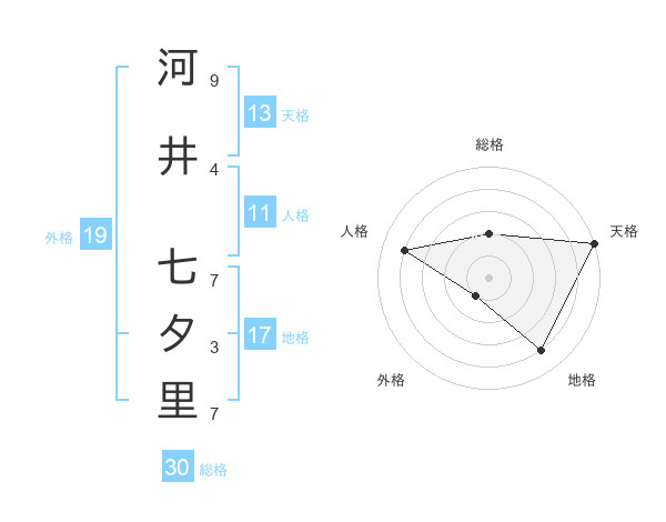 河井 七夕里さんを姓名の画数から五運を鑑定