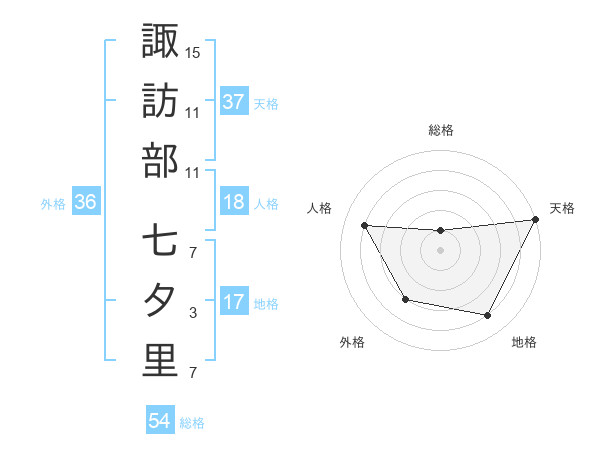諏訪部 七夕里さんを姓名の画数から五運を鑑定