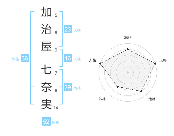 加治屋 七奈実さんの天格は23画の5点!