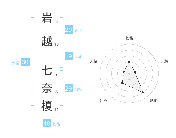 岩越 七奈榎さんの総格は49画の2点!