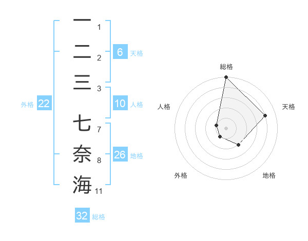 一二三 七奈海さんを姓名の画数から五運を鑑定