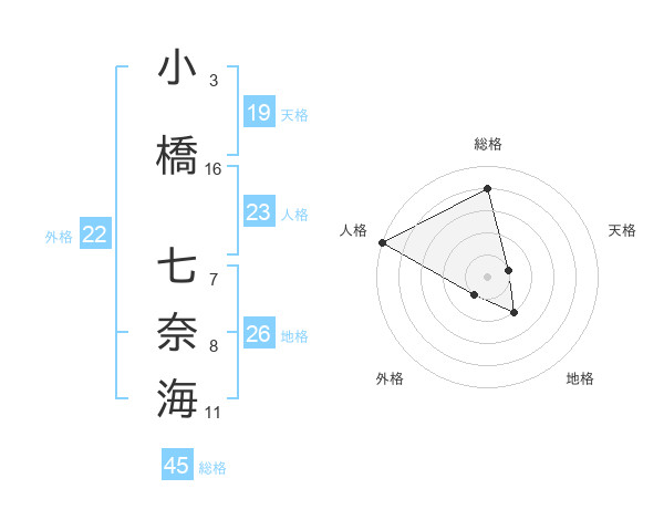 小橋 七奈海さんを姓名の画数から五運を鑑定