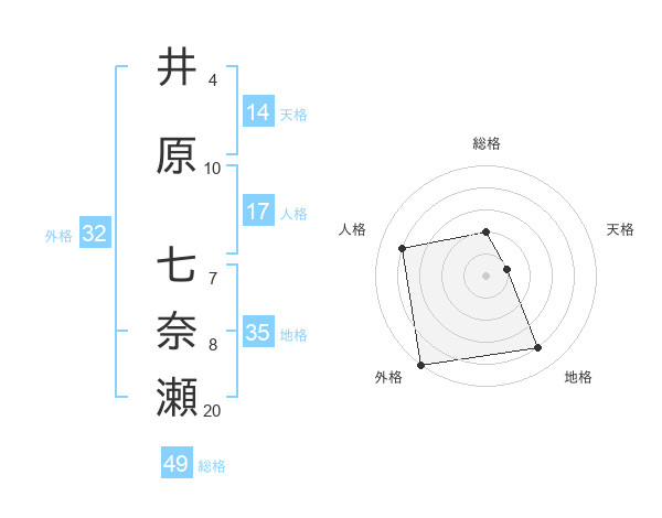 井原 七奈瀬さんの外格は32画の5点!