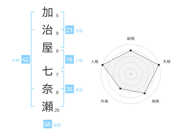 加治屋 七奈瀬さんを姓名の画数から五運を鑑定