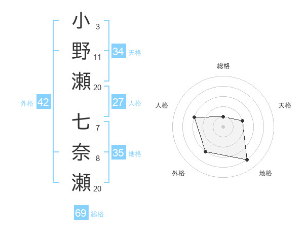 小野瀬 七奈瀬さんを姓名の画数から五運を鑑定