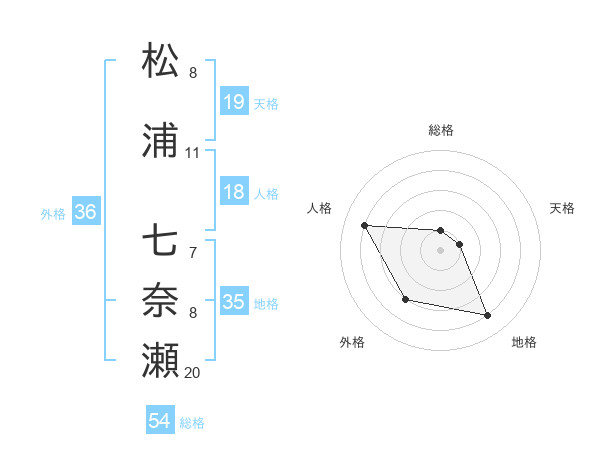 松浦 七奈瀬さんを姓名の画数から五運を鑑定
