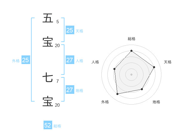 五宝 七宝さんを姓名の画数から五運を鑑定