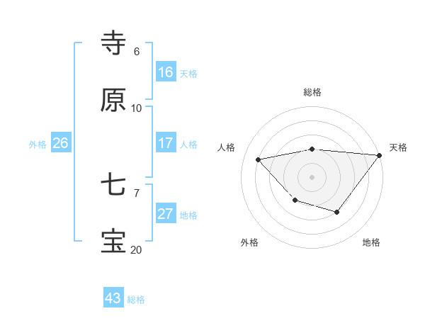 寺原 七宝さんの天格は16画の5点!