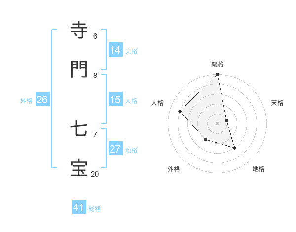 寺門 七宝さんを姓名の画数から五運を鑑定