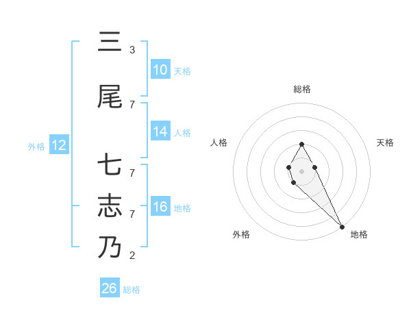 三尾 七志乃さんを姓名の画数から五運を鑑定