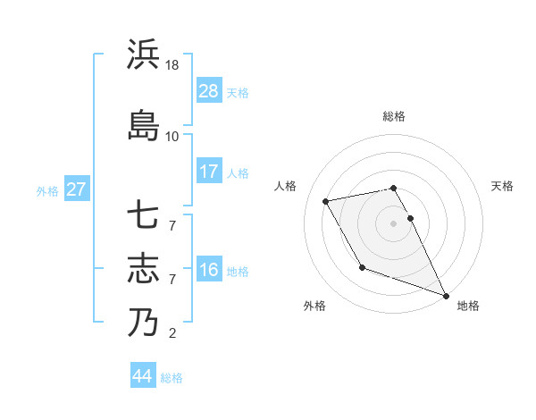 浜島 七志乃さんの総格は44画の2点!