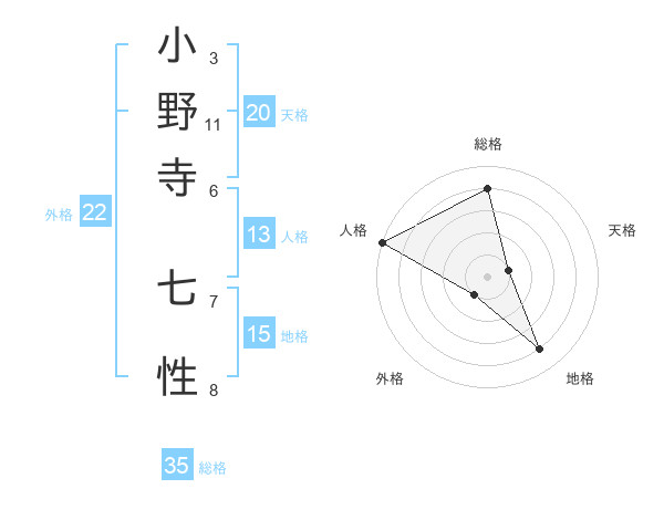 小野寺 七性さんを姓名の画数から五運を鑑定