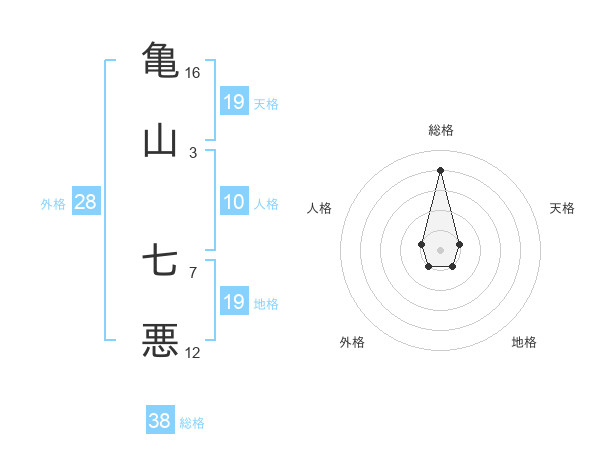亀山 七悪さんを姓名の画数から五運を鑑定