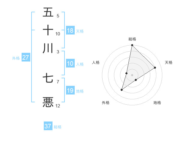 五十川 七悪さんの総格は37画の5点!