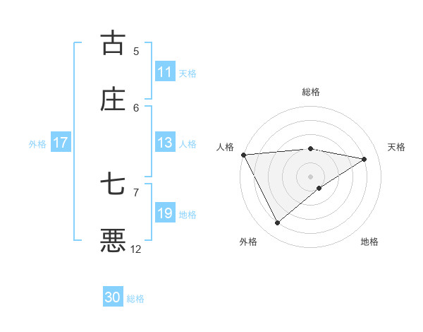 古庄 七悪さんを姓名の画数から五運を鑑定
