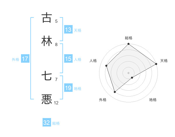 古林 七悪さんの総格は32画の5点!