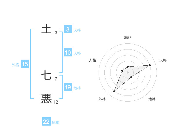 土 七悪さんの総格は22画の1点!