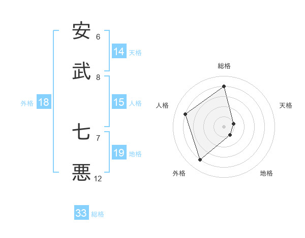 安武 七悪さんの総格は33画の4点!