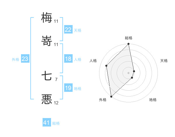 梅嵜 七悪さんの外格は23画の5点!