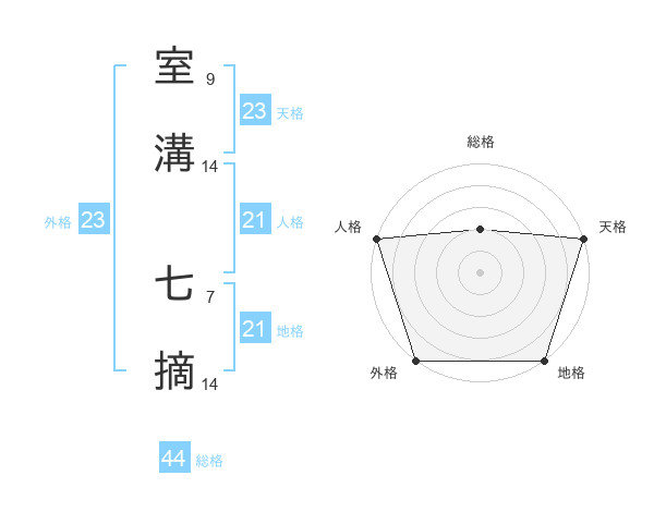 室溝 七摘さんを姓名の画数から五運を鑑定