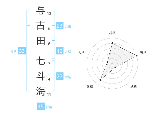 与古田 七斗海さんの天格は23画の5点!