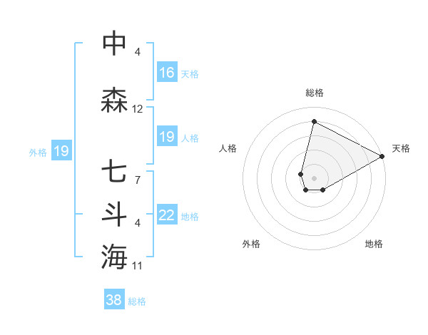 中森 七斗海さんの総格は38画の4点!