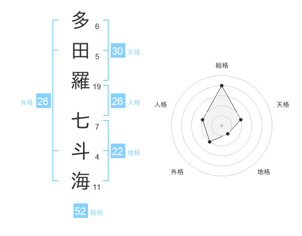 多田羅 七斗海さんを姓名の画数から五運を鑑定