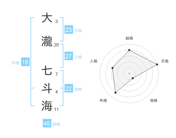 大瀧 七斗海さんを姓名の画数から五運を鑑定