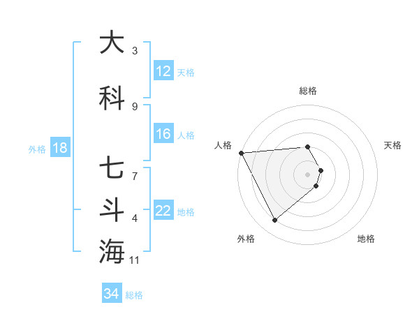大科 七斗海さんを姓名の画数から五運を鑑定