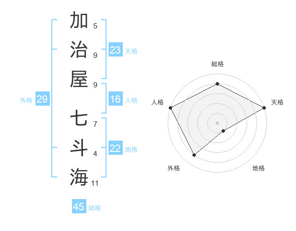 加治屋 七斗海さんの総格は45画の4点