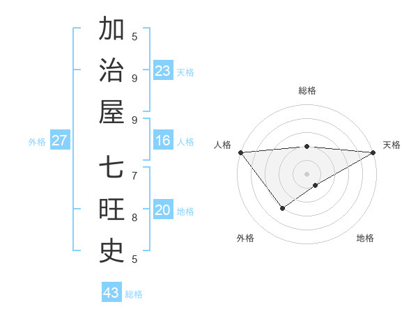 加治屋 七旺史さんを姓名の画数から五運を鑑定