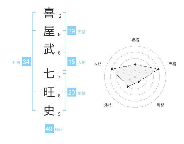 喜屋武 七旺史さんの総格は49画の2点!