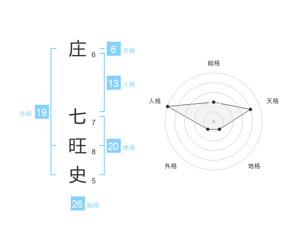 庄 七旺史さんの総格は26画の2点!