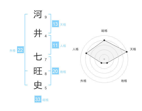 河井 七旺史さんを姓名の画数から五運を鑑定