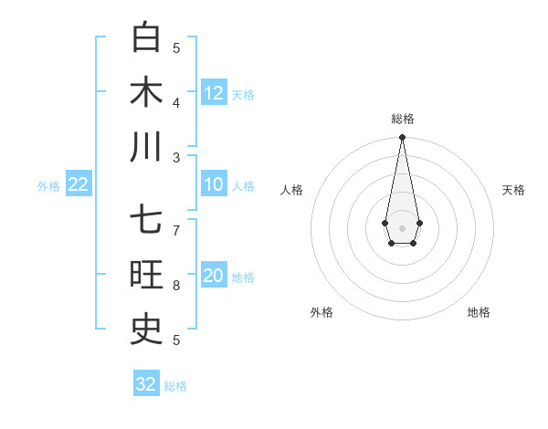 白木川 七旺史さんを姓名の画数から五運を鑑定