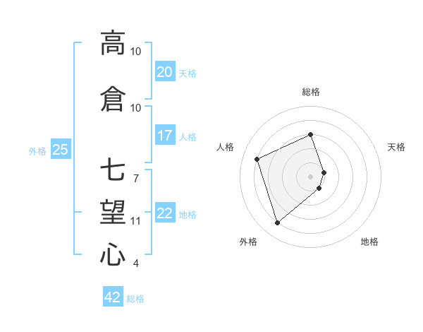 高倉 七望心さんを姓名の画数から五運を鑑定