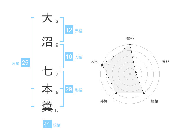 大沼 七本糞さんを姓名の画数から五運を鑑定