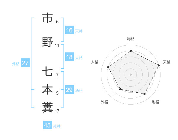 市野 七本糞さんを姓名の画数から五運を鑑定