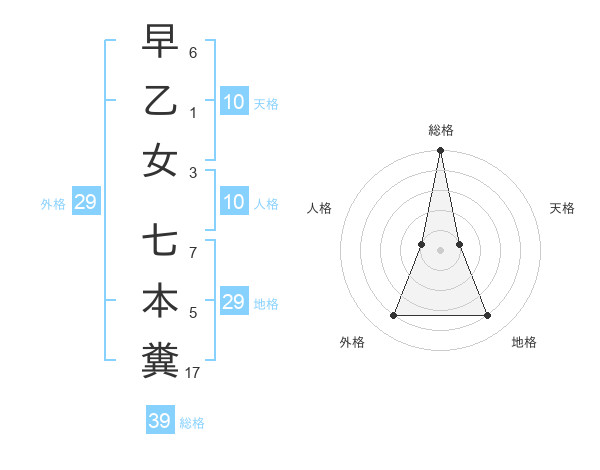 早乙女 七本糞さんを姓名の画数から五運を鑑定