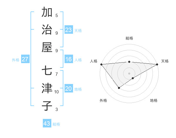 加治屋 七津子さんを姓名の画数から五運を鑑定
