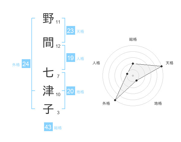 野間 七津子さんの外格は24画の5点!