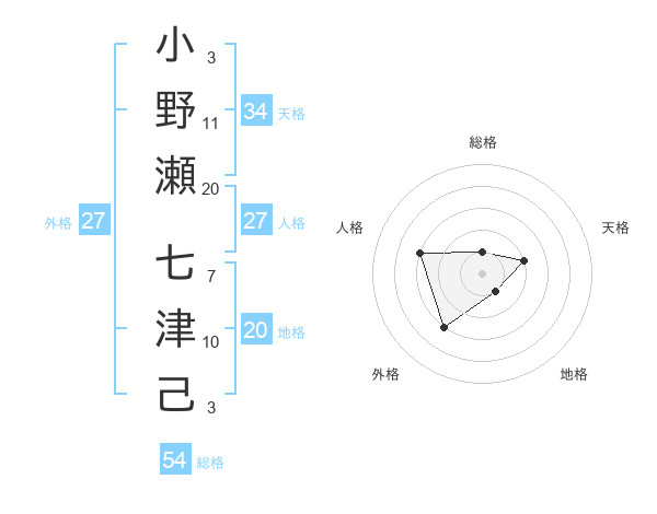 小野瀬 七津己さんを姓名の画数から五運を鑑定