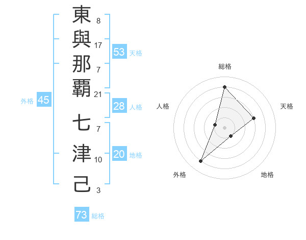 東與那覇 七津己さんを姓名の画数から五運を鑑定