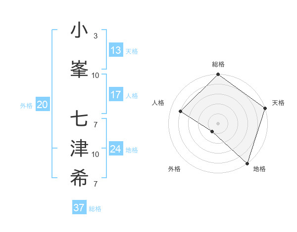 小峯 七津希さんを姓名の画数から五運を鑑定