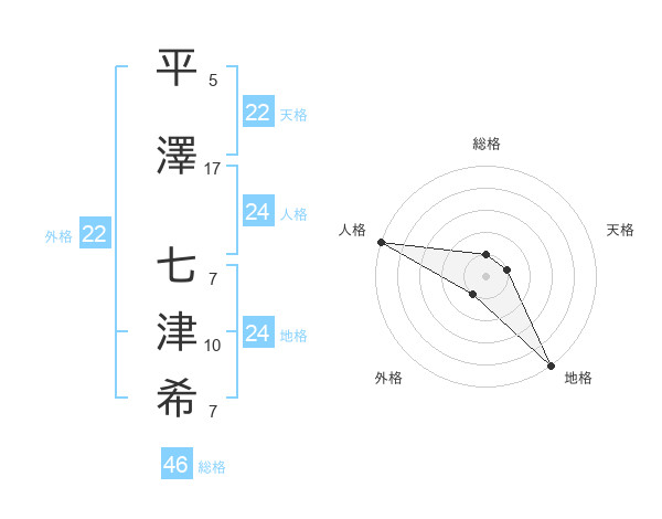 平澤 七津希さんを姓名の画数から五運を鑑定