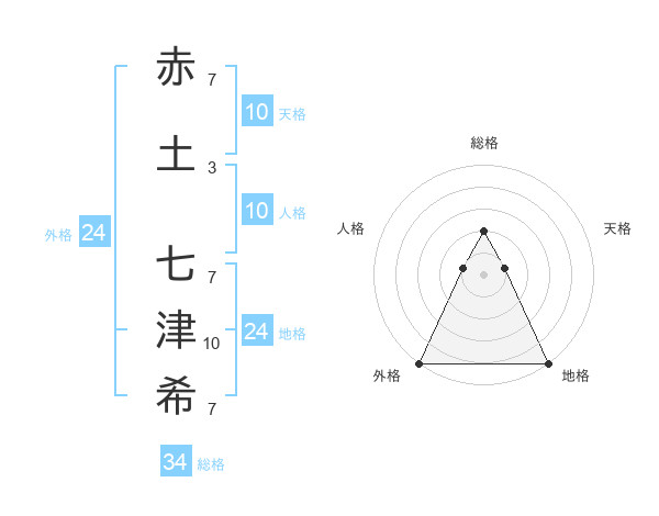 赤土 七津希さんの総格は34画の2点!