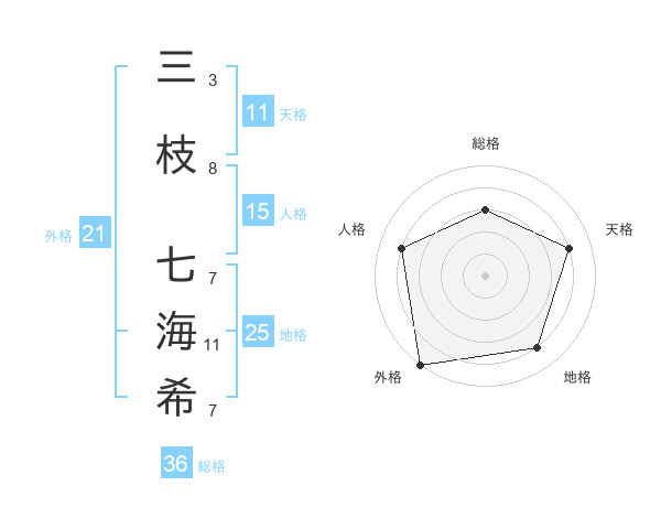 三枝 七海希さんの天格は11画の4点!
